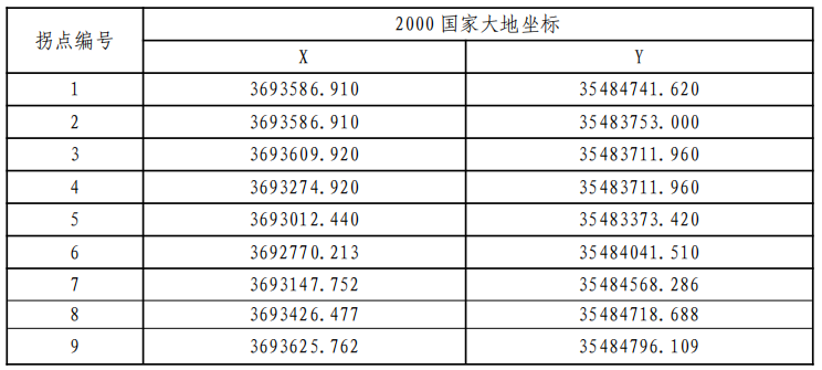 礦區面積:0.6968平方公里,共由9個(gè)拐點(diǎn)圈定,各拐點(diǎn)坐標如下: