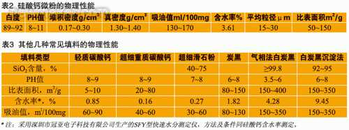 由表2、表3可見,與其他常用橡塑填料相比,硅酸鈣微粉還具有下列特點: