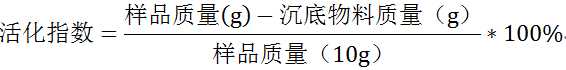 活化指數(shù)的一般測定方法是,稱取一定量表面改性后的粉體樣品,置于盛有一定容積純凈水的燒杯中,以一定轉(zhuǎn)速攪拌1~2min;然后靜置,等溶液澄清后,刮去水溶液表面的粉體物料,并將沉入燒杯底的粉體物料過濾、烘干、稱重。然后根據(jù)下式計(jì)算活化指數(shù),即: