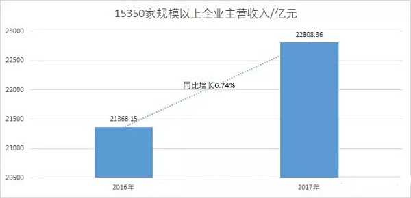 速度效益同步提升。2017年,全國(guó)塑料制品行業(yè)匯總統(tǒng)計(jì)企業(yè)累計(jì)完成產(chǎn)量7515.54萬(wàn)噸,同比增長(zhǎng)3.44%,增長(zhǎng)率比上年同期提高0.78個(gè)百分點(diǎn);15350家規(guī)模以上企業(yè)累計(jì)完成主營(yíng)業(yè)務(wù)收入22808.36億元,同比增長(zhǎng)6.74%,增長(zhǎng)率比上年同期提高0.63個(gè)百分點(diǎn);主營(yíng)業(yè)務(wù)收入占輕工行業(yè)比重為9.41%,占全國(guó)工業(yè)比重為1.96%。累計(jì)實(shí)現(xiàn)利潤(rùn)總額1354.68億元,同比增長(zhǎng)4.81%,增長(zhǎng)率較上年同期降低2.51個(gè)百分點(diǎn);利潤(rùn)總額占輕工行業(yè)比重為8.52%,占全國(guó)工業(yè)比重也為1.8%。