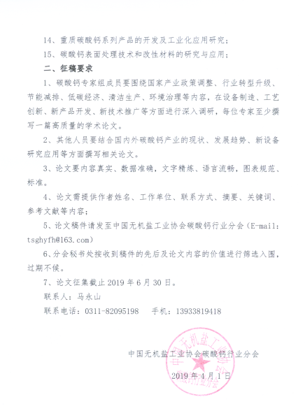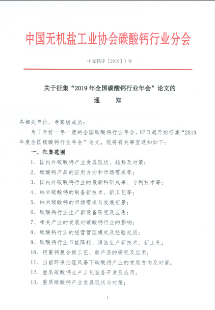 關于征集“2019年全國碳酸鈣行業(yè)年會”論文通知