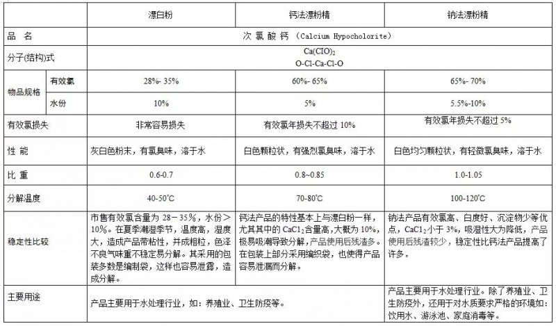漂白粉、鈣法漂粉精、鈉法漂粉精的區(qū)別: