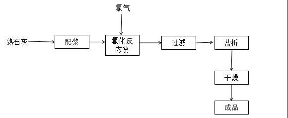 鈣法生產(chǎn)漂粉精技術(shù)為石灰漿料在反應(yīng)器中與氯氣反應(yīng),通過觀察生成物的結(jié)晶狀態(tài)確定反應(yīng)終點,反應(yīng)結(jié)束后的漿料經(jīng)分離、干燥、冷卻后得到成品。
