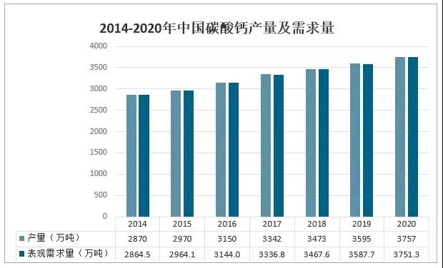 碳酸鈣是用途極廣的寶貴資源石灰石作為礦物原料的商品名稱。石灰?guī)r在人類(lèi)文明史上,以其在自然界中分布廣、易于獲取的特點(diǎn)而被廣泛應(yīng)用。2020年中國(guó)碳酸鈣產(chǎn)量約為3575萬(wàn)噸,同比增長(zhǎng)4.5%;碳酸鈣表觀需求量為3751.3萬(wàn)噸,同比增長(zhǎng)4.6%。