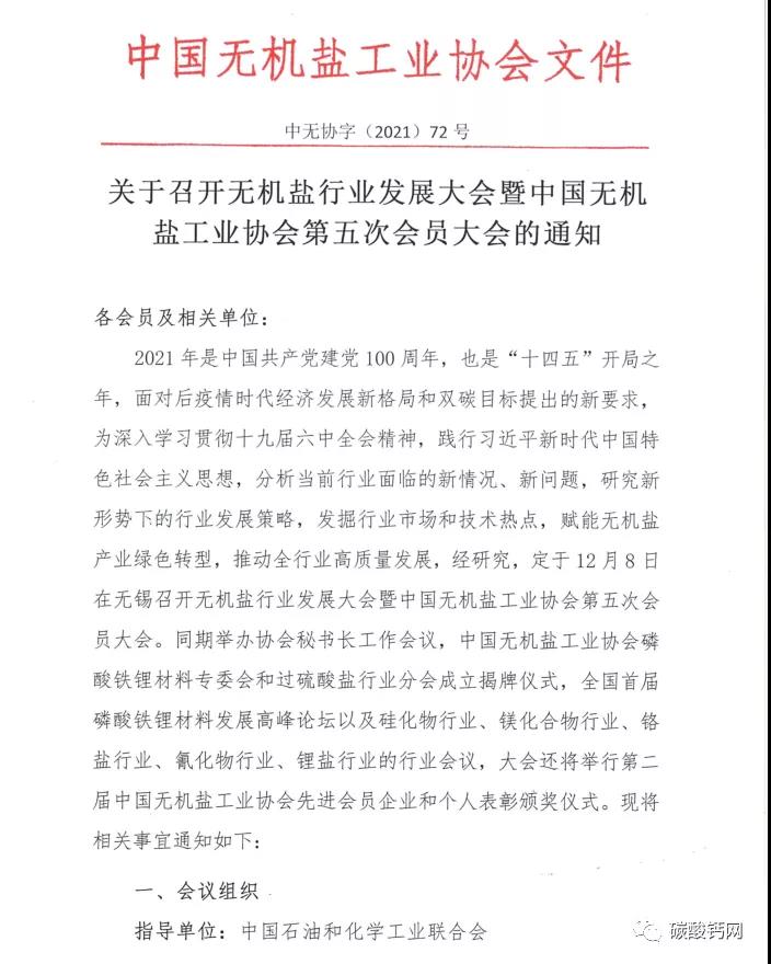 關(guān)于組織參加“無(wú)機(jī)行業(yè)發(fā)展大會(huì)暨中國(guó)無(wú)機(jī)鹽工業(yè)協(xié)會(huì)第五次會(huì)員大會(huì)”的通知