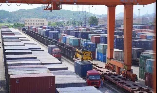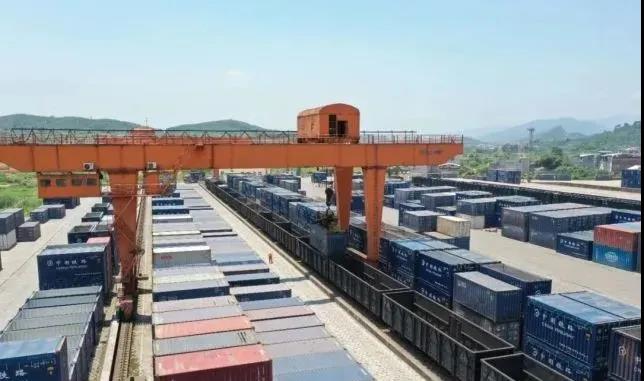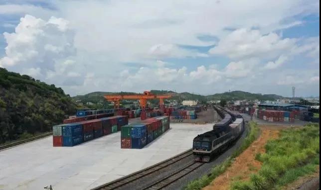 滿載碳酸鈣原料的集裝箱班列駛出賀州鐘山貨場