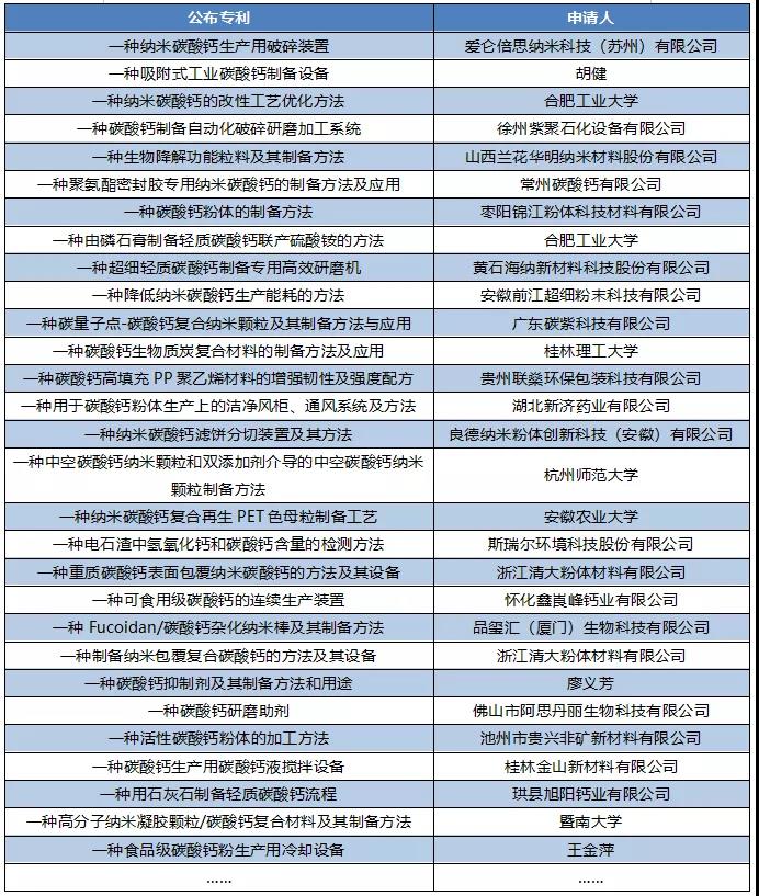 除此之外,還有很多企業(yè)、科研機(jī)構(gòu)公布了碳酸鈣相關(guān)專利。