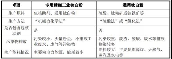 專用精細(xì)工業(yè)鈦白粉和通用鈦白粉產(chǎn)品差異情況