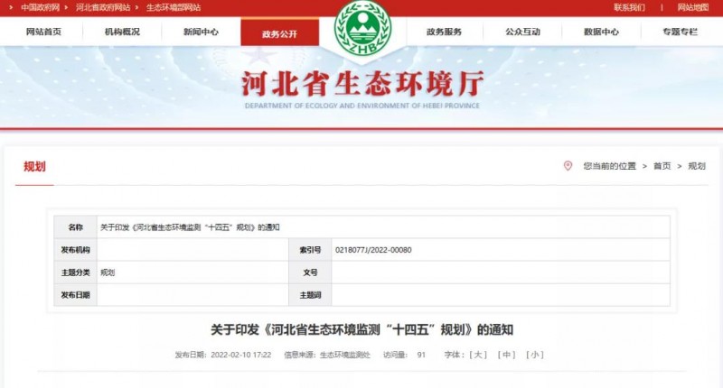 《河北省生態(tài)環(huán)境監(jiān)測“十四五”規(guī)劃》已經(jīng)省政府審定同意,現(xiàn)印發(fā)給你們,請結合實際認真組織實施。