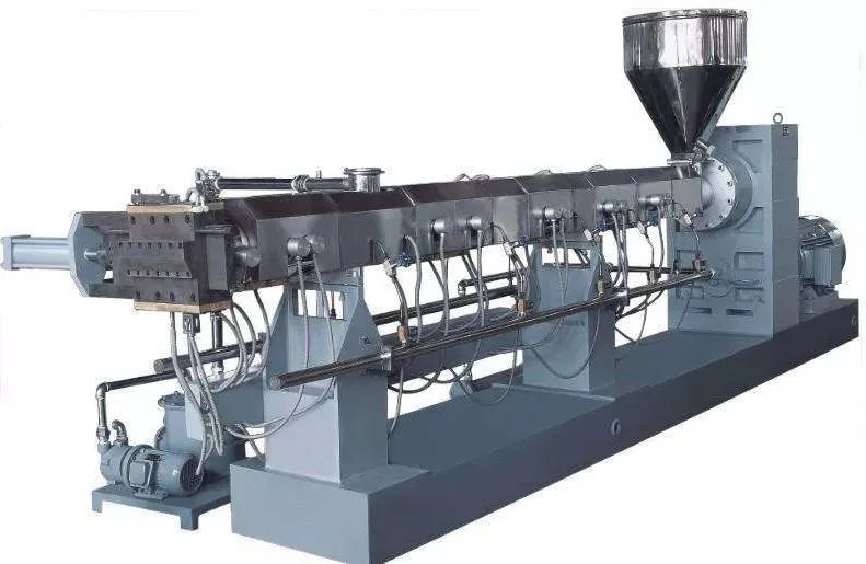 用于物料混合混煉造粒的擠出機(jī)也非常重要,同向平行雙螺桿擠出機(jī)遠(yuǎn)遠(yuǎn)優(yōu)于帶混煉段的單螺桿擠出機(jī),而往復(fù)式單螺桿擠出機(jī)在生產(chǎn)超細(xì)重鈣為主要原料的薄膜級填充母料方面,其效果要優(yōu)于同向平行雙螺桿擠出機(jī)。