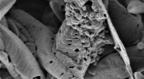在中低放大倍數(shù)下,高能二次電子成像使宏觀尺度樣品表面對比度消失。在更高的放大倍數(shù)下,微米到納米級的表面對比度消失或呈現(xiàn)半透明狀,并且邊緣模糊(邊緣效應(yīng))。尤其是在以10keV加速電壓采集的圖像中,幾乎看不見顆粒內(nèi)部的形貌。
