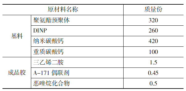 表2 聚氨酯密封膠的試驗(yàn)配方