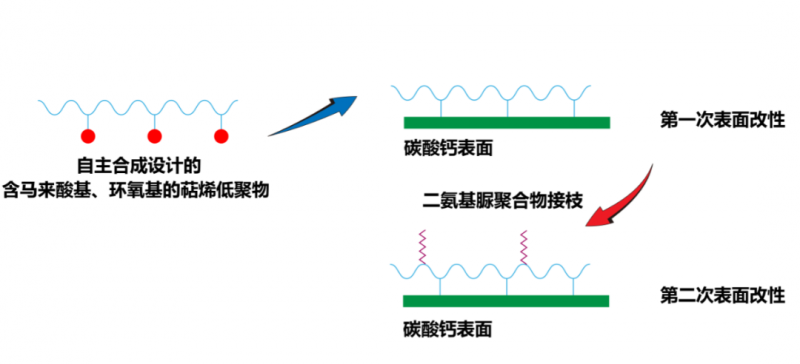 4)將陳化后碳酸鈣漿液輸送至活化釜,溫度升至90 ℃,加入(2.2~2.8)%的混合改性劑溶液進(jìn)行包覆處理(攪拌45 min);然后,加入(1.0~1.5)%的二氨基脲聚合物,繼續(xù)活化攪拌40 min;然后,進(jìn)行脫水、烘干,當(dāng)半成品水份≤0.25%時(shí),進(jìn)入粉碎工段包裝,即可得到KS-500產(chǎn)品。