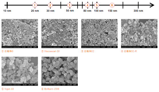 除了確保均勻的粒子形狀外,穩(wěn)定的結(jié)晶、均勻的粒子大小也是讓填料達(dá)到所需特性的重要因素。以膠體粒子為例,白石公司在20-300nm的范圍內(nèi),針對(duì)性地生產(chǎn)出特定粒徑的碳酸鈣。通過(guò)生產(chǎn)均勻的粒子,能夠確保向基材賦予物理性質(zhì)的重現(xiàn)性。