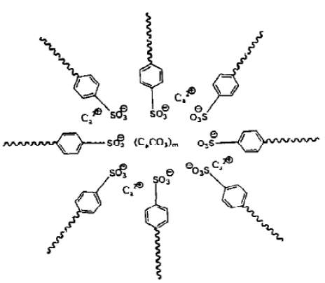 復(fù)合磺酸鈣基潤滑脂由基礎(chǔ)油、稠化劑和添加劑等組成,與普通皂基脂不同的是稠化劑。復(fù)合磺酸鈣基潤滑脂的稠化劑主要由兩部分組成:高堿性非牛頓體磺酸鈣和復(fù)合鈣皂,兩者之間既有物理混合,又有化學(xué)締合,是一個較復(fù)雜的化合物體系。非牛頓體磺酸鈣由油溶性的牛頓體轉(zhuǎn)化而來,牛頓體高堿值磺酸鈣由烷基苯磺酸鈣正鹽和碳酸鈣組成,其結(jié)構(gòu)如圖2 所示,其中R是C20-C30 的烷基,m 可高達40,碳酸鈣微粒一般小于10 nm,被磺酸鈣分子包裹,形成穩(wěn)定的膠粒溶于油中,高堿值來源于分散在膠粒中的碳酸鈣。