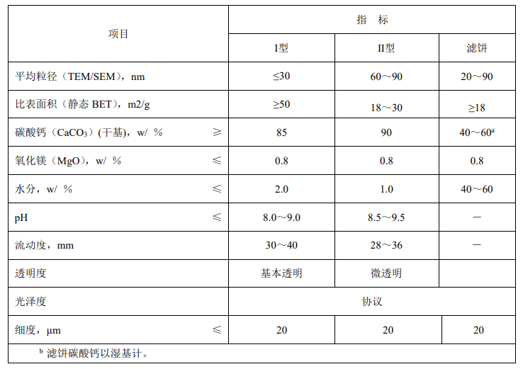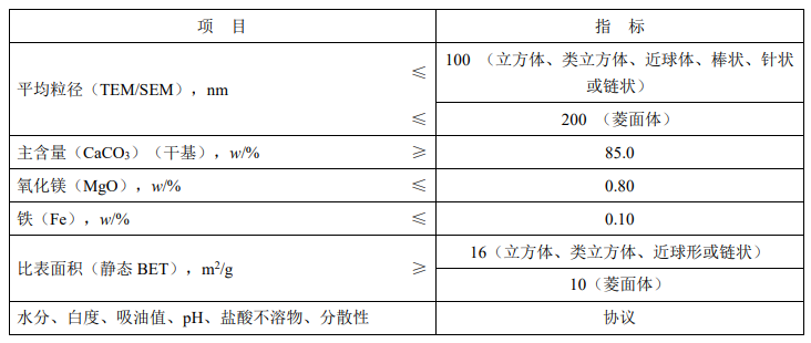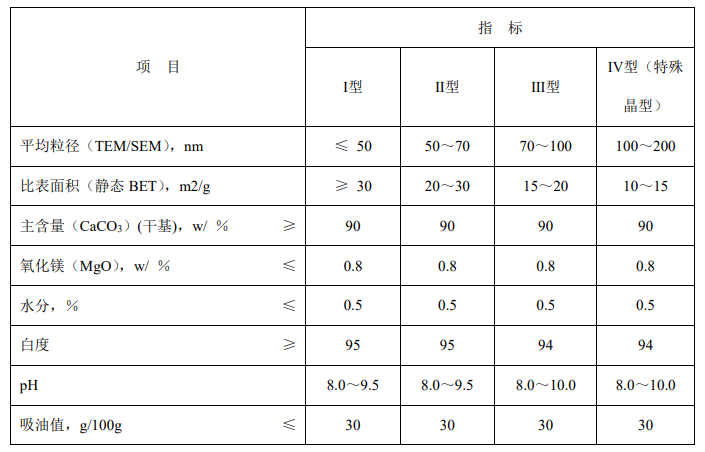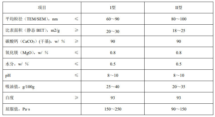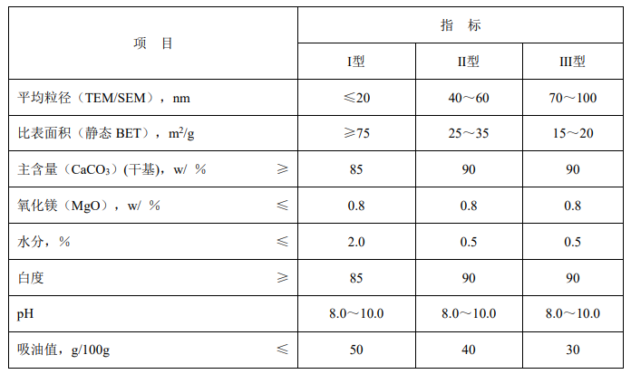 橡膠用納米碳酸鈣推薦指標(biāo)