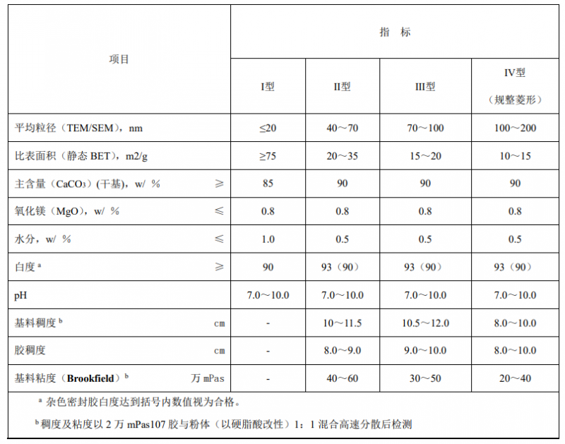 密封膠、膠粘劑用納米碳酸鈣推薦指標(biāo)