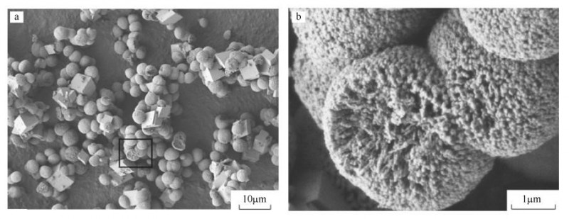 再將微球浸入K2HPO4溶液中,與微球表面的CaCO3在恒溫水浴下反應(yīng),用去離子水和無水乙醇清洗后,真空干燥,獲得表面包被羥基磷灰石納米結(jié)構(gòu)的聚乳酸復(fù)合微球。