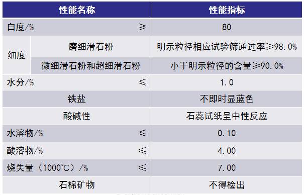 涂料-油漆用、造紙用、塑料用、橡膠用、電纜用、陶瓷用、防水材料用、通用滑石粉產(chǎn)品質(zhì)量符合《滑石粉》(GB/T 15342) 標(biāo)準(zhǔn)。