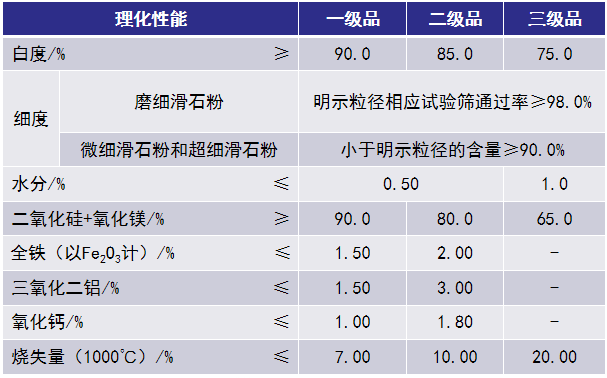 通用滑石粉的理化性能要求(GB/T 15342-2012)