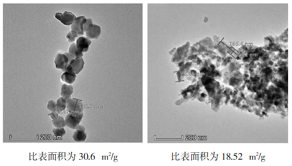 可以看出,配方二及配方三用納米碳酸鈣與黑色漿混合制備亮黑硅酮密封膠,成品膠拉伸強(qiáng)度有所提高。分析原因,應(yīng)該是納米碳酸鈣有更低的吸油值,為了調(diào)整膠的稠度及擠出性,納米碳酸鈣的用量要比氣相二氧化硅大。但市購(gòu)納米碳酸鈣影響了亮黑硅酮密封膠的亮度,使其表面不夠光亮,無(wú)法單獨(dú)充當(dāng)填料使用。采用氣相二氧化硅作為填料時(shí),由于加工困難,加入的填料用量受限,成品膠的觸變性較差,且對(duì)鋁材粘結(jié)效果不好。而納米碳酸鈣K-A800由于具有與炭黑類似的結(jié)構(gòu),且經(jīng)過(guò)復(fù)合表面處理劑改性處理,在亮黑硅酮密封膠體系中具有良好的相容性和分散性,試驗(yàn)過(guò)程中體現(xiàn)出來(lái)的吃粉速度明顯比氣相二氧化硅快很多,加工性得到了顯著改善。此外,納米碳酸鈣K-A800的粒徑在20 nm以下,遮蓋性小,基本不影響亮黑膠的亮度,與氣相二氧化硅效果相當(dāng),且具有明顯的補(bǔ)強(qiáng)和粘結(jié)效果。 優(yōu)選設(shè)備及工藝,合成了一次粒徑為10~20 nm的納米碳酸鈣產(chǎn)品K-A800,比表面積達(dá)到100 m2/g以上,具有晶體規(guī)整、粒徑小且分布均勻、比表面積高、分散性好等優(yōu)點(diǎn)。將該納米碳酸鈣與氣相二氧化硅進(jìn)行對(duì)比,結(jié)果發(fā)現(xiàn),納米碳酸鈣K-A800兼具補(bǔ)強(qiáng)性、配伍性和加工性,可替代或部分替代價(jià)格昂貴的氣相二氧化硅,具有較好的經(jīng)濟(jì)性。同時(shí),粒徑超過(guò)20 nm的納米碳酸鈣具有一定的遮蓋性,不適用于亮閃系列中性硅酮密封膠。