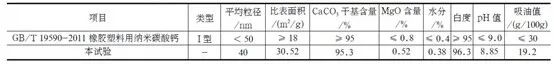 本試驗(yàn)的納米碳酸鈣與GB/T 19590-2011的指標(biāo)對比