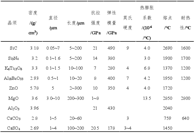 核心提示:晶須是指自然形成或人工合成的具有單晶結(jié)構(gòu)的短纖維,其直徑非常小數(shù)量級(微米級),具有大的長徑比,被普遍看作一維晶體材料。
