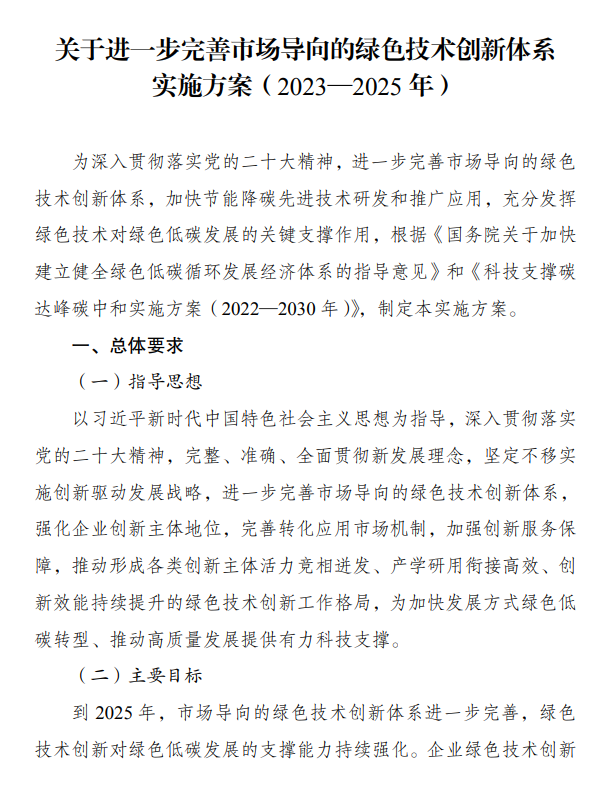 為深入貫徹落實(shí)黨的二十大精神,進(jìn)一步完善市場(chǎng)導(dǎo)向的綠色技術(shù)創(chuàng)新體系,加快節(jié)能降碳先進(jìn)技術(shù)研發(fā)和推廣應(yīng)用,國(guó)家發(fā)展改革委、科技部會(huì)同有關(guān)部門(mén)研究制定了《關(guān)于進(jìn)一步完善市場(chǎng)導(dǎo)向的綠色技術(shù)創(chuàng)新體系實(shí)施方案(2023—2025年)》?,F(xiàn)印發(fā)給你們,請(qǐng)遵照?qǐng)?zhí)行。