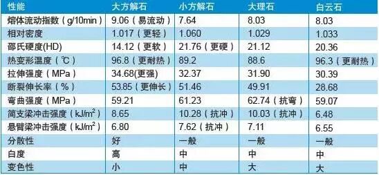 如果確定選擇重質(zhì)碳酸鈣,具體又該選擇何種重質(zhì)碳酸鈣?根據(jù)改性性能需要選取不同品種的重質(zhì)碳酸鈣,具體見表1所示。