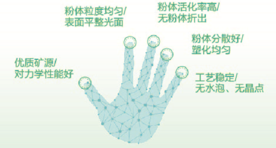 采用特殊表面處理劑進(jìn)行改性,具有分散性好、流動(dòng)性好、超高白度、耐高溫等特點(diǎn)。用于高分子材料中能夠顯著提高制品的拉伸強(qiáng)度、斷裂伸長率、彎曲強(qiáng)度、彎曲模量等性能指標(biāo);用于PLA、PBAT等降解塑料中具有良好的綜合性能,不僅能顯著提高制品的強(qiáng)度及韌性,增加制品剛度,而且不像普通活性產(chǎn)品會(huì)導(dǎo)致制品加速降解及熱封性能變差。