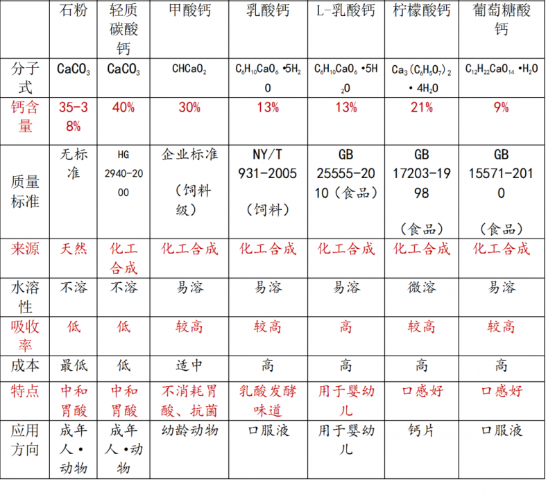 這是當(dāng)今飼料配方中常見的幾種鈣源對比情況,平時飼料中有機(jī)鈣應(yīng)用建議與選擇是: