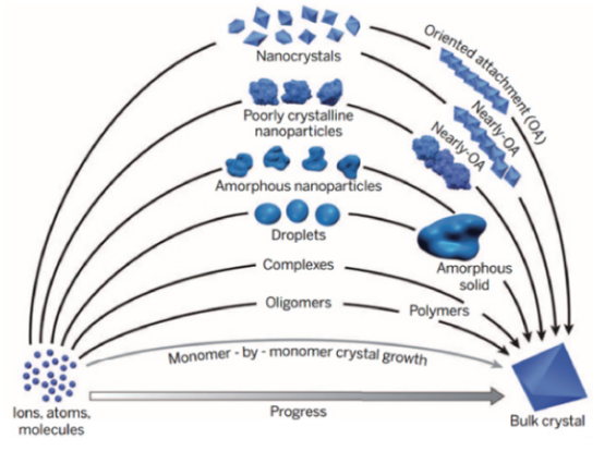 相比經(jīng)典成核和結(jié)晶過程,以無定形物相為前驅(qū)體的晶體生長過程有更多的優(yōu)勢,包括[3]:
