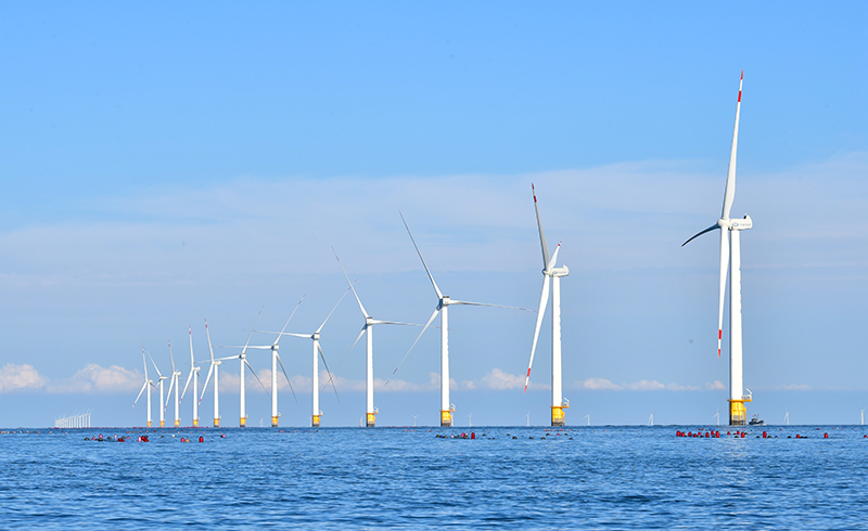2023年9月13日拍攝的遼寧大連莊河海上風(fēng)電項(xiàng)目。新華社記者 楊青 攝