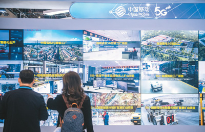 11月20日,湖北省武漢市,參觀者在2023中國5G+工業(yè)互聯(lián)網(wǎng)大會創(chuàng)新成果展上參觀。