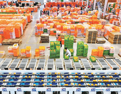 12月16日,在江西省贛州市安遠縣產(chǎn)城新區(qū)的一家采用5G+工業(yè)互聯(lián)網(wǎng)技術(shù)的果業(yè)加工企業(yè)內(nèi),工人在智能化生產(chǎn)線上加工包裝贛南臍橙。