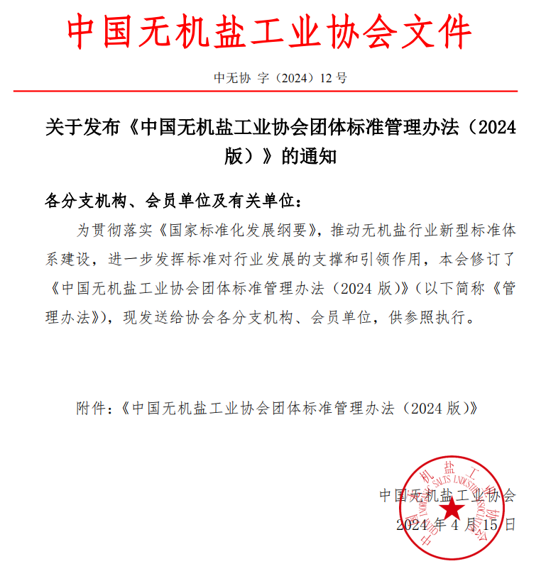 中國無(wú)機鹽工業(yè)協(xié)會(huì )團體標準管理辦法 (2024 版)