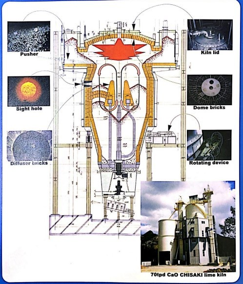 日本地崎株式會社研制了一種新型立窯,該立窯系統(tǒng)以區(qū)別于傳統(tǒng)意義的煅燒方式而聞名海外,并因其煅燒制度可控快調、活性度可控快調、產能可控快調等優(yōu)越性能得到海外眾多高端鈣鎂生產企業(yè)的青睞。
