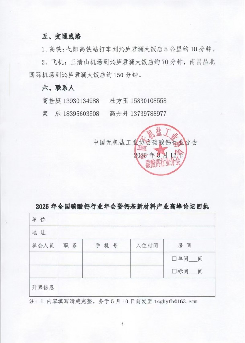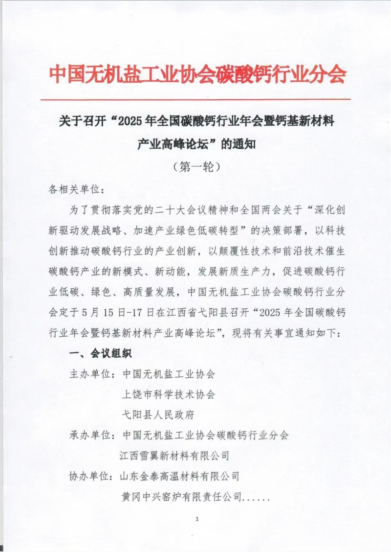 關(guān)于召開“2025年全國碳酸鈣行業(yè)年會暨鈣基新材料產(chǎn)業(yè)高峰論壇”的通知